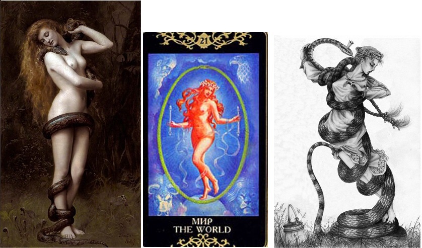 «Жена Самаэля». Араб.СаМа – небо, высь. «Высокая молчаливая с длинными чёрными распущенными ВоЛоСами». Это смыслы СЛоВ скрываемые обществом в умолчания, знание теневых свойств вещей. У арабов она Карина или Табиа – можно понять «КР-чтение табу-запретное», т.е. сокрытое знание.