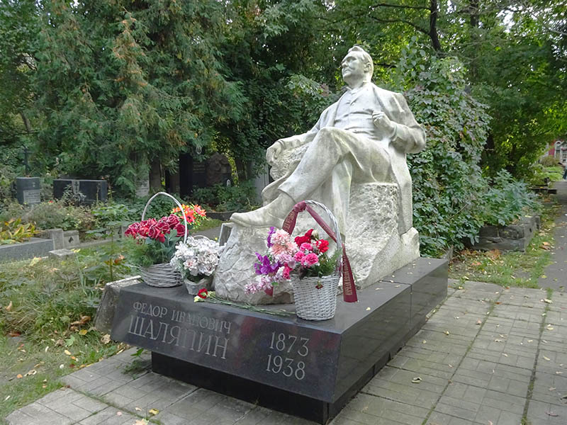 могила оперного певца Ф.И.Шаляпина, перезахоронен в 1984 г. с кладбища Батиньоль; памятник выполнен по картине К.А.Коровина, скульптор А.Е.Елецкий, уч.4