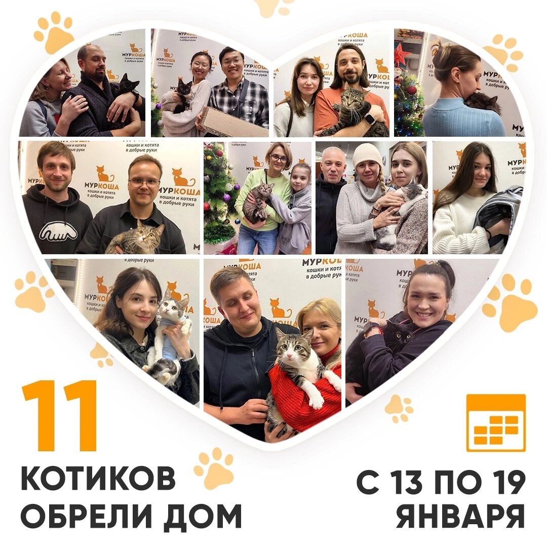 Друзья! Сегодня среда, и мы, как обычно, подводим итоги работы «Муркоши» за прошедшую неделю. Кто же стал счастливым выпускником Центра помощи кошкам «Муркоша» с 13 по 19 января 2025 года? 😺 🥳 Итак, за прошедшую неделю домашними и любимыми стали 11 котиков! Мудрый Муравчик жил в библиотеке. Но ласковому котику хотелось иметь свой дом, своих хозяев. В «Муркоше» его мечта исполнилась – Муравчика забрала домой добрая семья! Хозяин бросил Микелона, уехав из общежития. Поэтому котик оказался у нас. Недавно он встретил прекрасных хозяев! Мы уверены, что больше Микелона не предадут! Малыш Пельмешик жил на улице перед тем, как попасть в приют. Для такого красавца быстро нашлись милые хозяева, с которыми он уже уехал в тёплый дом! С передержки к нам приехал нежный малыш Ахти. Мальчик очаровал большую семью и уезжает с ними в новую счастливую жизнь! Очень пушистый Эштон жил на улице. К счастью, красавца заметили неравнодушные люди. Он приехал к нам, где отъелся, отогрелся и в итоге стал дома