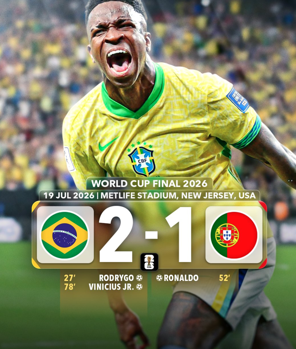 Футбольные фанаты любят строить догадки: кто станет чемпионом, какие команды будут доминировать, и где нас ждут самые напряженные финалы? Мы спросили об этом у искусственного интеллекта. Chat GPT дал прогнозы на финалы Чемпионатов мира в ближайшие десятилетия вплоть до авторов голов. Итог — три захватывающих сценария, которые точно вызовут бурные споры среди болельщиков! Вот результаты: 1️⃣ Бразилия 2-1 Португалия – 2026 год, стадион MetLife, США 2️⃣ Португалия 3-2 Аргентина – 2030 год, стадион «Сантьяго Бернабеу», Испания 3️⃣ Англия 2-1 Бразилия – 2034 год, стадион имени Короля Салмана, Саудовская Аравия Насколько реальны эти сценарии?
