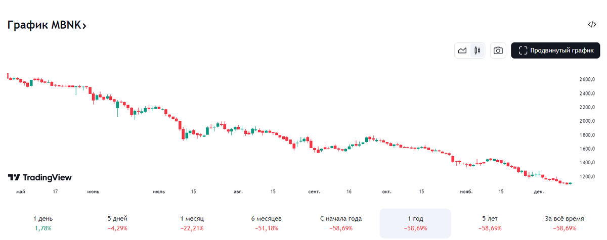То есть, у МТС-банка дела обстоят весьма неплохо, на фоне многих других компаний, они даже лучше, чем у головной компании МТС! Но акции вот так валятся.