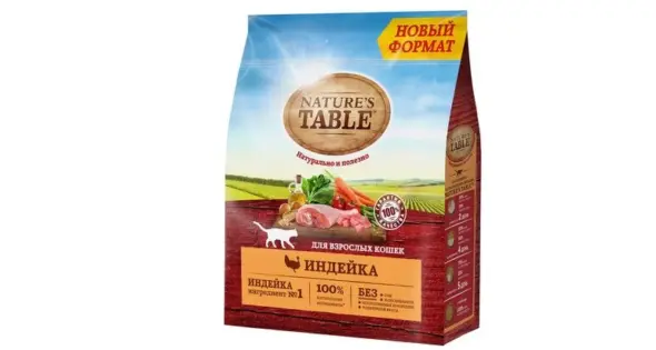 В нашем топе уверенно расположился Nature's Table – натуральный сухой корм для кошек, созданный с применением высококачественных натуральных ингредиентов, чтобы обеспечить питомцу все необходимые компоненты для здоровья и благополучия. Рацион включает в себя разнообразные компоненты, такие как индейка – источник легкоусвояемого животного белка, подсолнечное масло и рыбий жир для поддержания здоровья кожи и блеска шерсти, а также натуральные овощи и злаки, богатыми легкоусвояемыми углеводами, минералами и витаминами группы B для оптимального пищеварения и активности кошки.