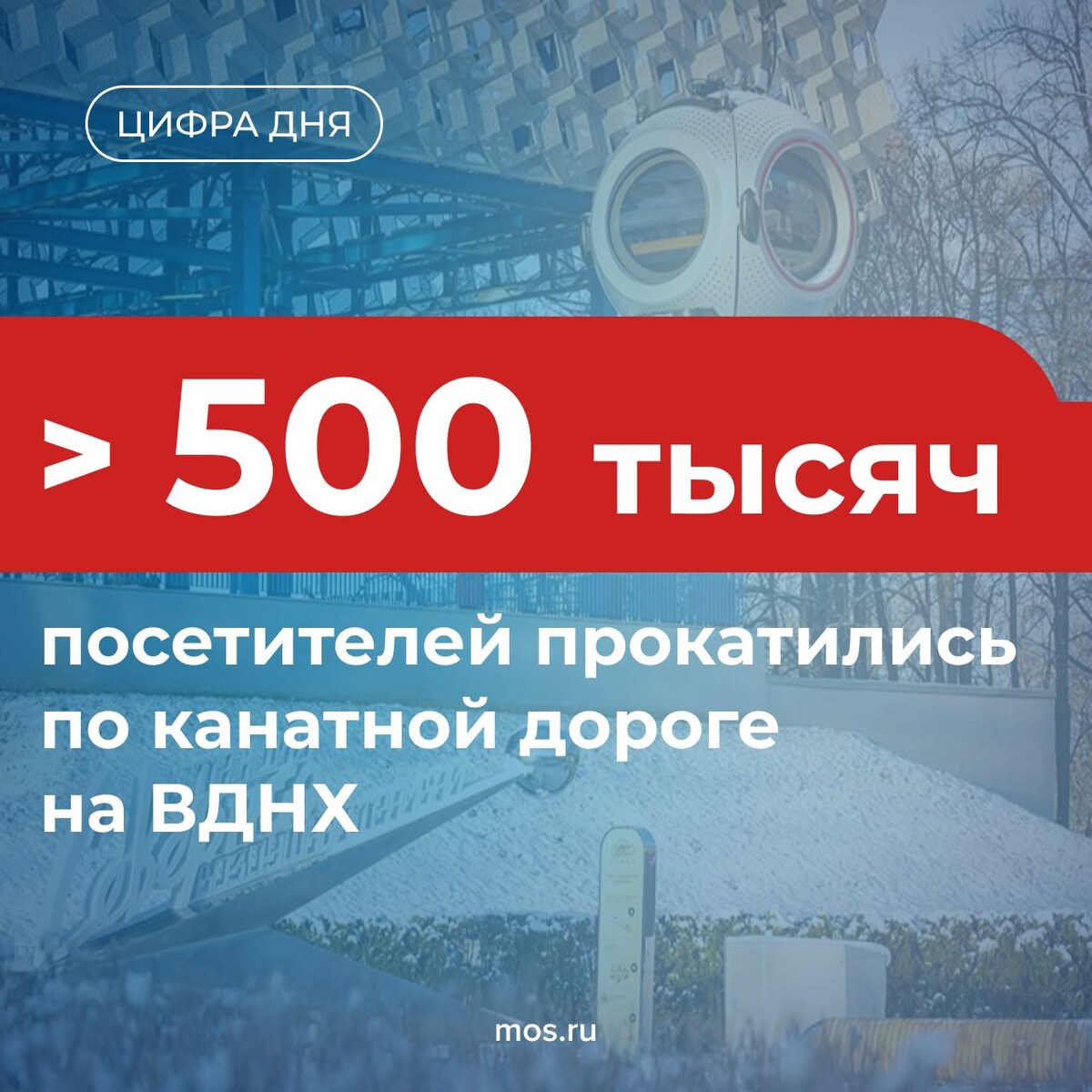 По канатной дороге на ВДНХ уже успели прокатиться более 500 тысяч жителей Москвы и гостей столицы. Протяженность маршрута составляет 769 метров. С высоты 32 метров открываются впечатляющие виды: главный и южный входы, павильон № 1 «Центральный», скульптурная композиция «Рабочий и колхозница» и знаменитый фонтан «Дружба народов». Канатная дорога работает по следующему расписанию: по понедельникам с 12:00 до 21:00, а с вторника по воскресенье — с 10:00 до 21:00. Билеты можно приобрести по ссылке.