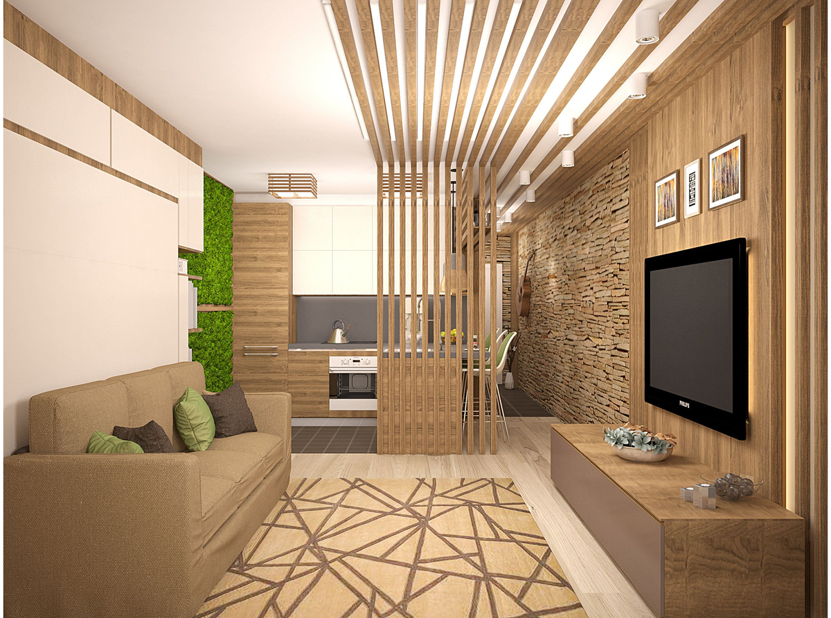 Гостиная – место отдыха, место, где вы собираетесь всей семьей, встречаете гостей. Именно поэтому она должна быть уютной, стильной, излучать тепло и комфорт. Все эти характеристики отражены в интерьере, выполненном в эко-стиле. Эко-стиль – это атмосфера спокойствия и умиротворения. Сочетание натуральных отделочных материалов, пастельных оттенков и тканей превратят обычную комнату в уютное семейное гнездышко. Начнем с выбора натуральных природных материалов. Первое, что приходит в голову, конечно древесина. Нестареющий материал, который с каждым сезоном, приобретает новый смысл и новую ветвь в трендах интерьера. Как производители термически обработанной древесины, мы конечно советуем применять именно её в отделке. Термодревесина – усовершенствованный материал, который не подвергается воздействию внешних факторов, долговечен и красив. В результате производства, текстура дерева становится более выраженная и контрастная, приобретает благородный оттенок. Идеально для оформления гостиной или
