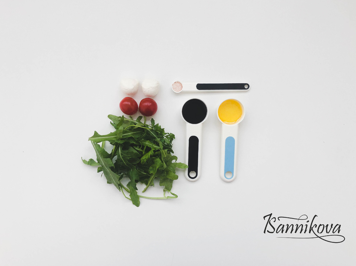 Ссылка на рецепт: https://ksenia-sannikova.ru/salads/recipe414/ Ингредиенты: 1. рукколу выложить в форме новогоднего венка 2. затем выложить моцареллу и помидоры черри (как вам хочется), посолить, сбрызнуть оливковым маслом и полить бальзамическим соусом На заметку: - я брала моцареллу мини, в пачке (12 штук); - черри лучше всего бррать сладких сортов, чтобы не было кислинки.