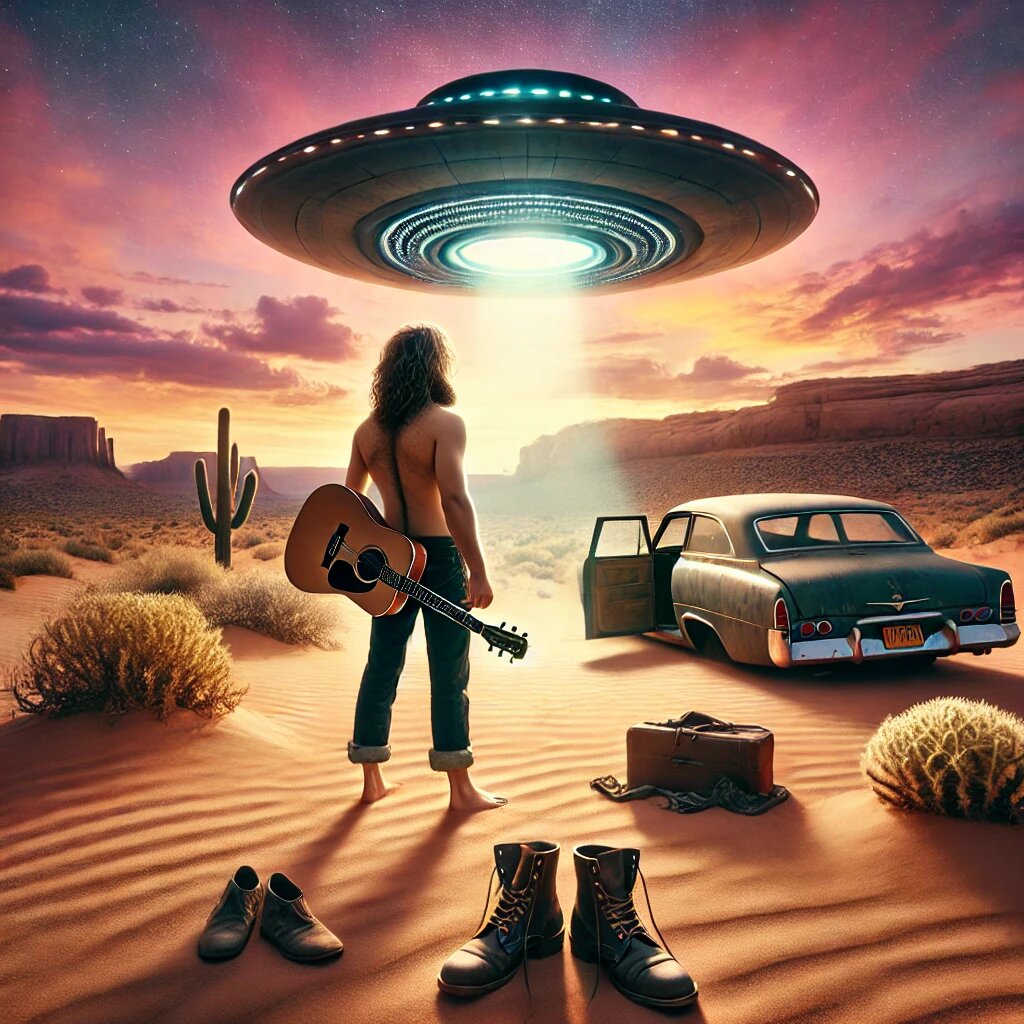 Интригует? Да это же загадка века! Погнали разбираться. Нью-Мексико, 1975 год. Джим Салливан – талантливый музыкант, чей альбом "UFO" буквально кричал о внеземной жизни. Он был харизматичным парнем, который мог одновременно играть блюз и пить виски так, что даже чёрт завидовал. Но его мечта о славе была капризной: иногда она вела на сцену, а иногда – прямо в пустыню, искать смысл жизни. Поворотный момент: Джим решил, что Лос-Анджелес ему тесен, и отправился в Нэшвилл. Взял пожитки, пару бутылок бурбона и выехал на машине.