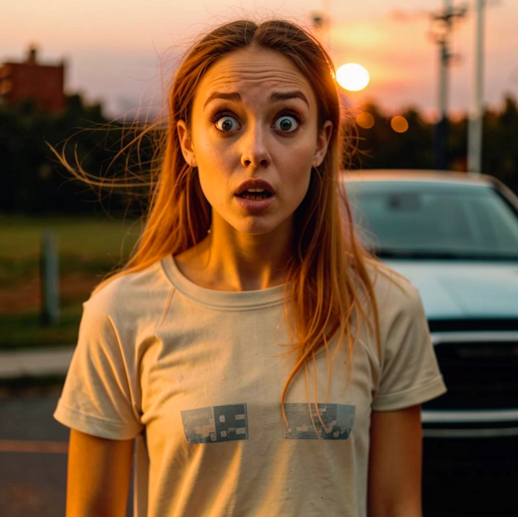 Ответа не было. Девушка стояла, закрыв лицо руками. Свет от фар и уличных фонарей позволил понять, что от незнакомки до бампера есть ещё несколько сантиметров.