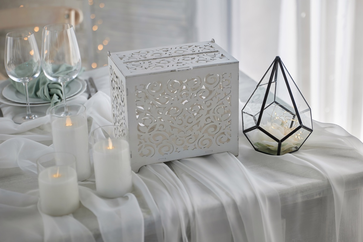 - Учитывайте уровень торжества. Если молодые устроили большой праздник с банкетом, то поздравлять стоит полноценно. Когда свадьба в облегченном формате, например, просто небольшой фуршет или посиделки в кафе, допустимо чуть уменьшить размах подарка.