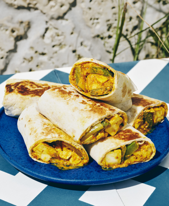 После длинного дня посещения лекций в колледже я всегда спешу с территории университета к местному продавцу кати роллов (индийское блюдо уличной еды), у которого всегда есть горячие парати (индийские лепёшки), которые можно наполнить разнообразными начинками. Начинку заворачивают в лепёшки, которые можно есть на ходу. Когда хочется есть и мало времени эти роллы являются выходом из положения. У продавца всегда большой выбор, но я всегда предпочитаю панир (сыр, распространённый в Азии) с овощами. В этом блюде парати наполняют традиционным образом: жирными кубиками панира, покрытыми острым, пикантным соусом из йогурта с кусочками перца и лука. Сделайте несколько, заверните их в пергаментную бумагу и фольгу и можно отправляться на пляж или в парк, или на прогулку. Они прекрасно для этого подходят и на вкус хороши как горячими из печи, так и прохладными, вынутыми из сумки через час или два. Процесс приготовления этих вкусных кати роллов очень прост. Ингредиенты острой и пряной начинки готов