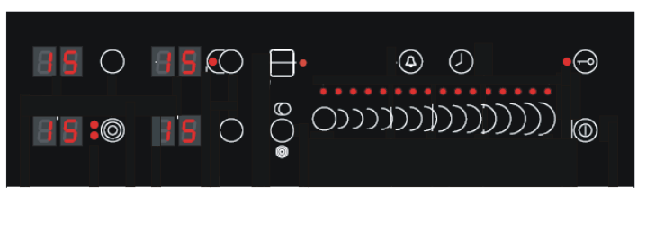 Устройство необходимо отключить от электросети и подключить снова. Когда на дисплее отобразиться надпись Gorenje, необходимо последовательно прикоснуться к сенсору вкл/выкл дополнительного контура нагрева (А) и к сенсору таймера (В). Для того чтобы сработал сенсор прикосновение должно быть не менее 1 секунды (рис.1) В тестовом режиме начинают светиться все светодиоды (за исключением диодов Slider Touch). В течение двух секунд на светодиодных дисплеях, отобразиться индикация версии установленного программно