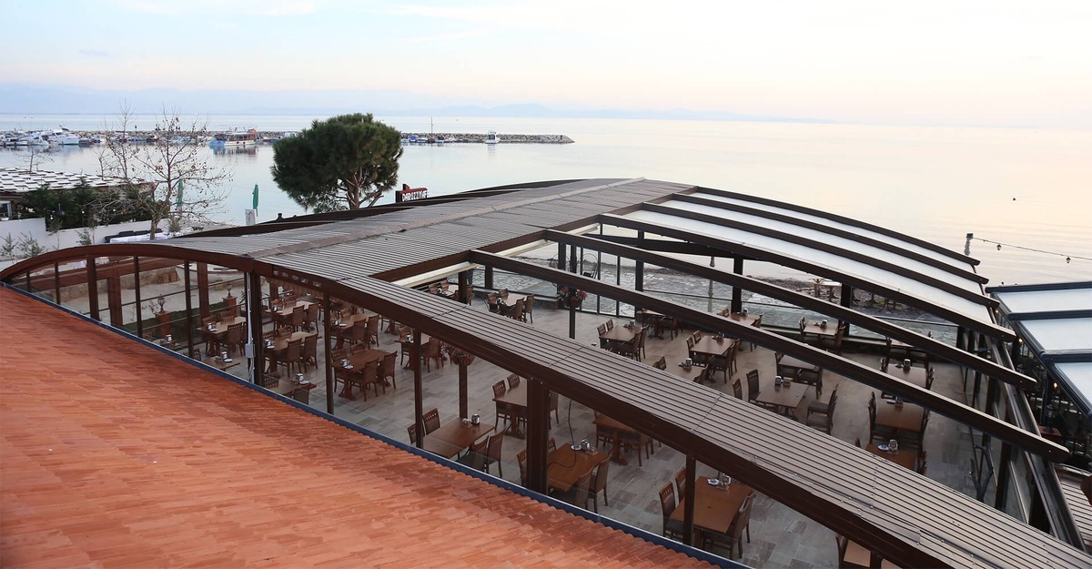 Ресторан с летней верандой на морском побережье обратился в ALDU Outdoor Systems с запросом на создание комфортного и функционального зала для своих гостей. Основные пожелания: Клиенты оставили заявку на сайте запросив расчет стоимости и консультацию. Решение Мы предложили установить двускатную автоматическую перголу ALDU AMBER, идеально подходящую для летней веранды ресторана. Она обеспечивает защиту от погодных условий, сохраняет современный стиль и удобна в эксплуатации. Результаты и преимущества Просторная летняя веранда ресторана защищена от осадков, ветра и солнечных лучей, что создает идеальные условия для времяпрепровождения. ПВХ ткань, используемая для крыши, обладает огнестойкими и водонепроницаемыми свойствами, что гарантирует долговечность. Современный дизайн перголы гармонично вписался в стиль ресторана, подчеркнув атмосферу заведения. Управление крышей с помощью пульта и возможность диммирования подсветки делают использование перголы максимально простым. От разраб