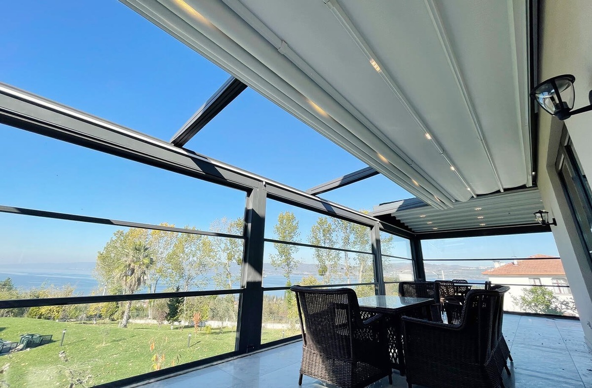 Владелец загородного дома обратился в ALDU Outdoor Systems с запросом на обустройство террасы на втором этаже, которая охватывает сразу две стороны дома и имеет Г-образную форму. Основные пожелания: Клиент оставил заявку на сайте и запросил расчет стоимости, а также 3D-визуализацию проекта. Для этого проекта мы предложили установить: Эти решения позволили превратить открытую Г-образную террасу на втором этаже в функциональное пространство для отдыха, защищенное от непогоды. Специалист выехал на объект для проведения замеров террасы (длина 9 метров с одной стороны и 6 метров с другой, высота остекления — 2,8 метра). Мы создали 3D-визуализацию, которая наглядно показала, как будет выглядеть терраса с гильотинным остеклением ALDU® Horizon и перголой ALDU® DIAMOND. Особое внимание было уделено переходам между длинной и короткой сторонами Г-образной формы, чтобы сохранить гармоничный дизайн. Гильотинное остекление: Пергола ALDU® DIAMOND: После установки конструкций мы провели финальное тест