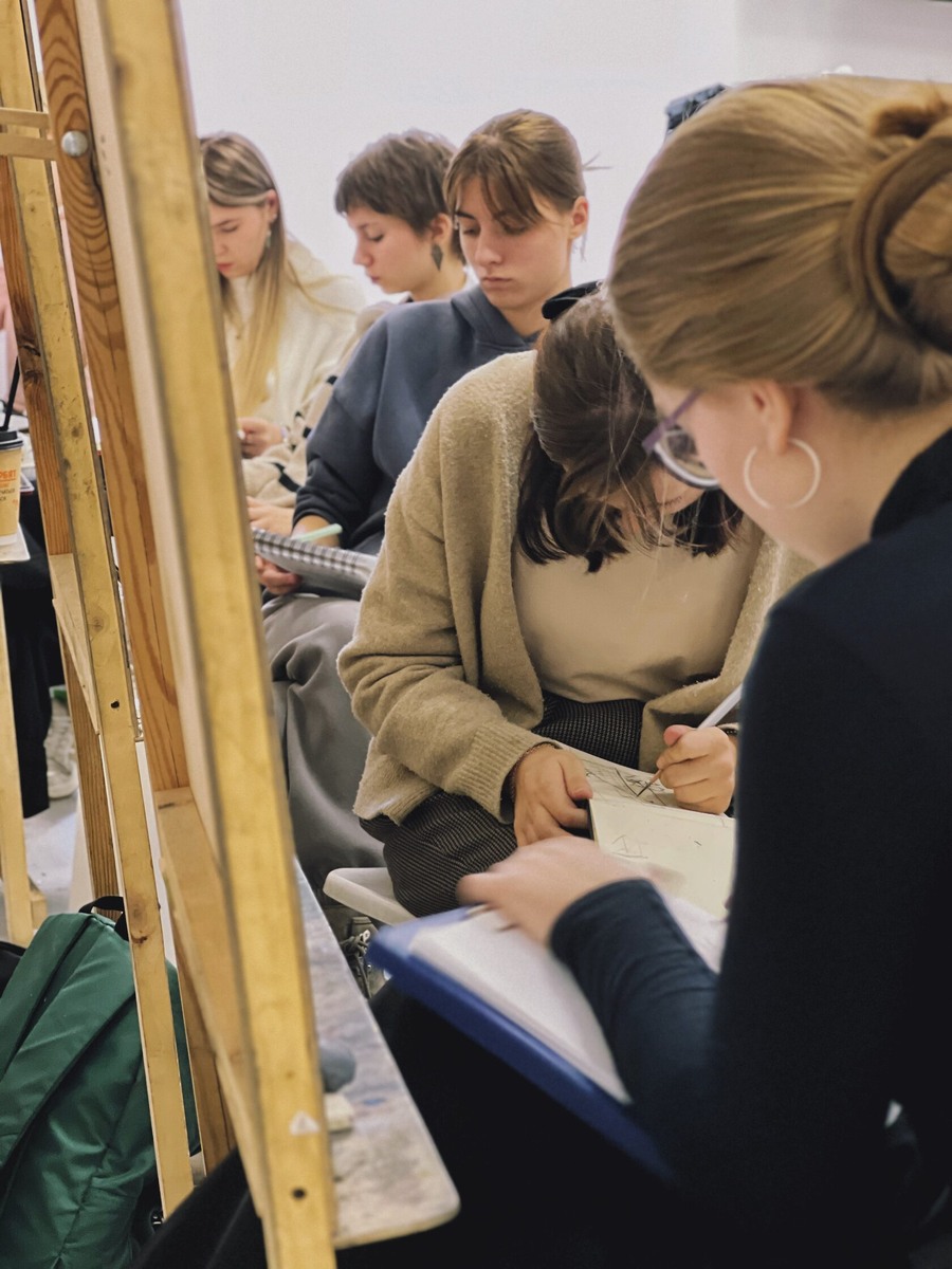 Групповые занятия — это не только возможность обучаться вместе с другими абитуриентами, но и шанс развить насмотренность. Общение с одногруппниками, обсуждение работ и наблюдение за их успехами помогут вам взглянуть на свои работы с разных сторон. Вы сможете учиться на чужих ошибках и вдохновляться их находками. Кроме того, групповая динамика мотивирует и создаёт атмосферу здоровой конкуренции.