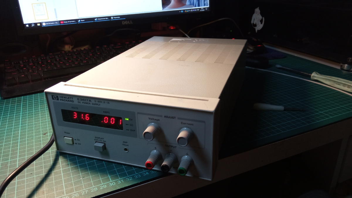 Недавно, мне в руки попал лабораторный блок питания HP E3617A, удачно купленный по цене обычного советского БП. При своей мощности в 60 Вт имеет размеры, схожие с линейкой тех же советских Б5-43—Б5-45А. Может работать от сети 100, 115 или 230 В, однако переключение входного напряжения производится вручную. Выходные параметры — напряжение от 0 до 60В, ограничение по току до 1А Верхняя крышка сделана из пластика и крепится к основному шасси по всем традициям зарубежного монтажа — пластиковыми зацепами. Её хоть и можно быстро снять, но делать это неудобно, да и сами зацепы не переживут много циклов снятия. Я бы предпочёл обычные винты. БП работал у продавца от сети 230В, хотя обнаруженная при получении наклейка 115V Only и метка на шильдике говорила о сети 115 Вольт. Но к счастью, вскрыв его я обнаружил, что он уже переключен на работу от 230. На передней панели находятся: Крутить потенциометры приятно, но возникают проблемы с тем, чтобы точно выставить нужное значение V или A. Так ж