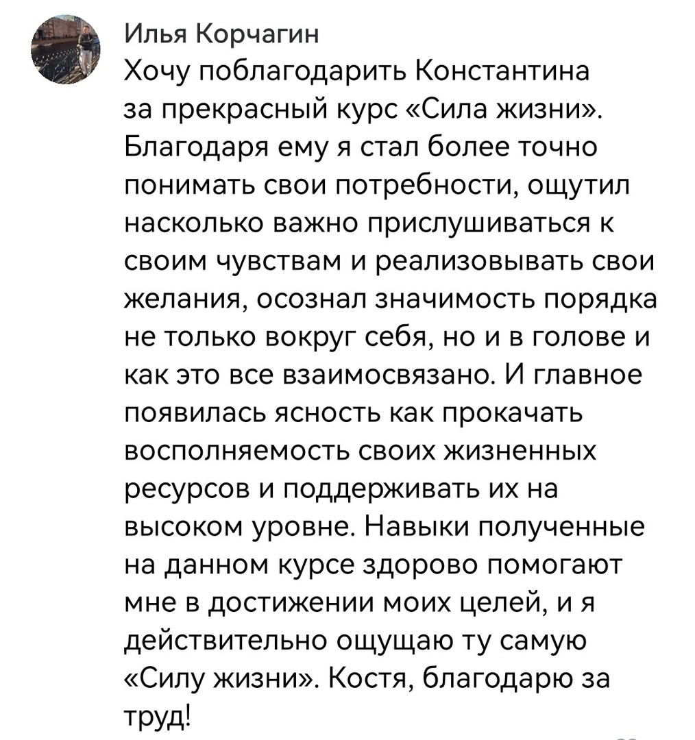 Отзыв Ильи Корчагина, прошедшего курс "Сила жизни":