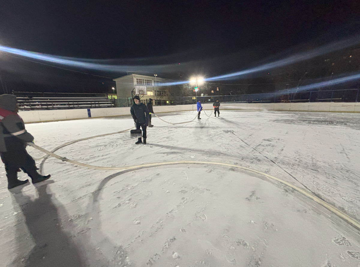 Сотрудниками МБУ «СК «Вороново» продолжается работа по заливке хоккейной площадки.