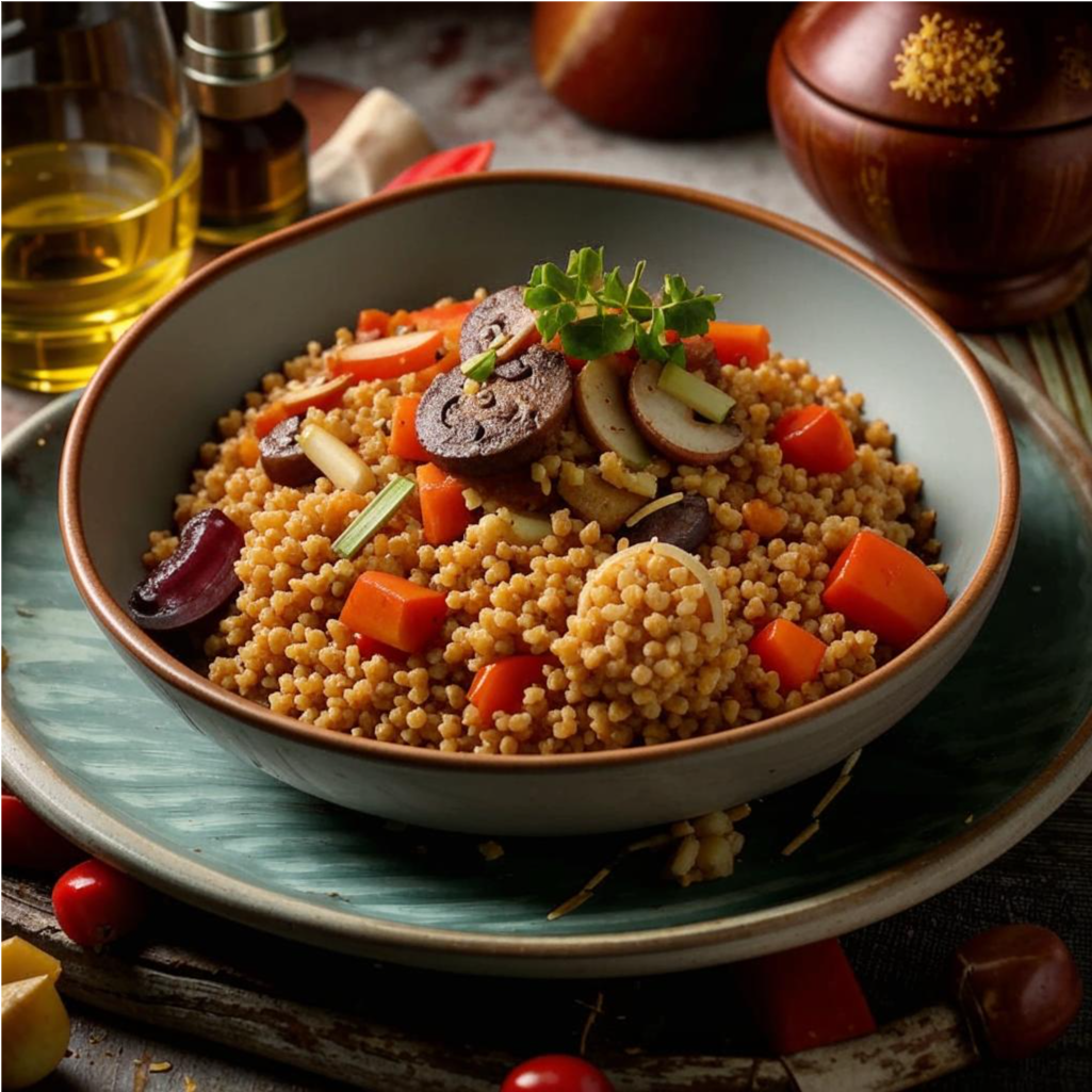 Уменьшите огонь до минимума, накройте крышкой и варите 15-20 минут, пока вся вода не впитается, а гречка не станет мягкой. - Смешивание:Когда гречка готова, добавьте ее в сковороду с грибами и овощами. Хорошо перемешайте, чтобы все ингредиенты объединились.
