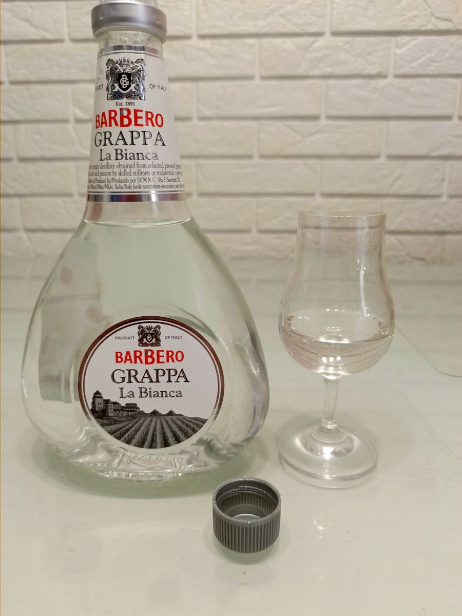 Всем привет! Сегодня у меня ещё одна граппа от известной дистиллерии The Antica Distilleria Domenico Sibona, но в отличие от своих сестёр об этом не догадаться, ибо марки Сибона здесь на этикетке не найти. Граппа эта попала к моему другу Саше (Коньячный Маньяк) ему известными путями напрямую из Италии, так что руской контры не имеет, а что там понаписано вокруг горлышка бутылки-без знания итальянского не разобрать. Да и пофиг, граппа- она в Италии граппа и есть! Ограничусь её кратким описанием с офсайта: Граппа Barbero Bianca – напиток, который производится на северо-западе Италии в регионе Пьемонт, получаемый в результате однократной дистилляции жмыха из различных пьемонтских сортов винограда и дальнейшей выдержки спиртов не менее 1 года в стальных чанах. На том и порешим. Аромат буквально вырвался из бокала и быстро заполнил комнату! Класс! И в бокале граппа с первого вдоха показывает привычное итальянское качество. Аромат мягок, но ярок, крайне насыщен, и моментально иденти