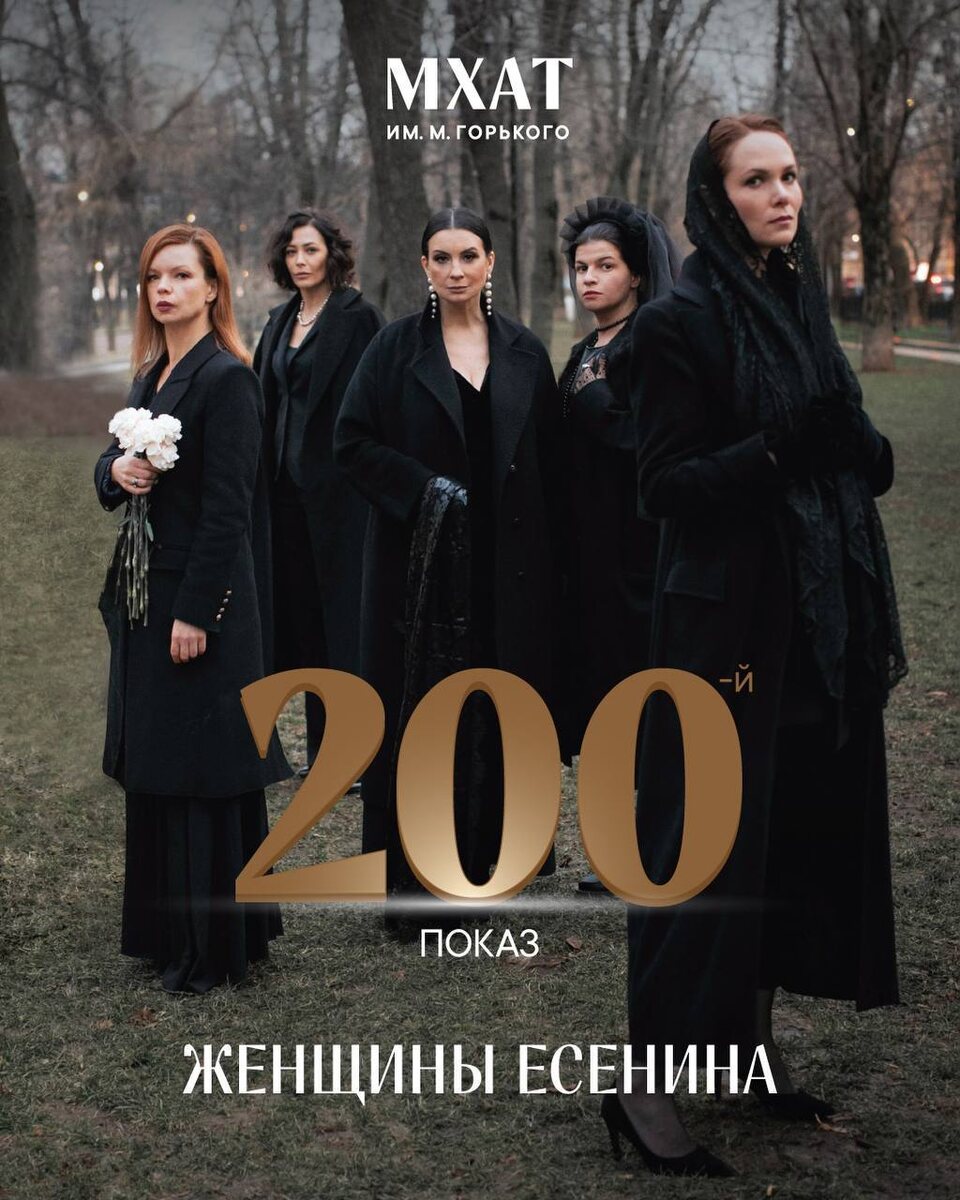 Сложно в это поверить, но всего за три года существования спектакля «Женщины Есенина» мы представили эту постановку на разных сценах уже 200 раз! Сегодня состоится двухсотый показ, и мы хотим поздравить создателей спектакля и всех артистов, задействованных в постановке, но самые громкие аплодисменты посвящаем актёрам, которые не пропустили ни одного показа. Исполнитель роли Сергея Есенина Андрей Вешкурцев и Алиса Гребенщикова в образе Зинаиды Райх неизменно присутствовали в составе каждого спектакля. И каждый раз их выступление было таким же эмоциональным и проникновенным, как в первый раз. Посмотреть легендарную постановку Галины Полищук «Женщины Есенина» по книге Захара Прилепина вы сможете 27–29 декабря, 3–5, 9–13 января. В главных ролях: Екатерина Стриженова, Екатерина Волкова, Алиса Гребенщикова, Андрей Вешкурцев, Агния Кузнецова, Наталия Медведева, Настя Кехман, Николай Коротаев, Ирина Линдт, Кристина Шмырина, Мария Янко, Эльвира Цымбал, Василиса Макарова. 🎫 Билеты в продаже на
