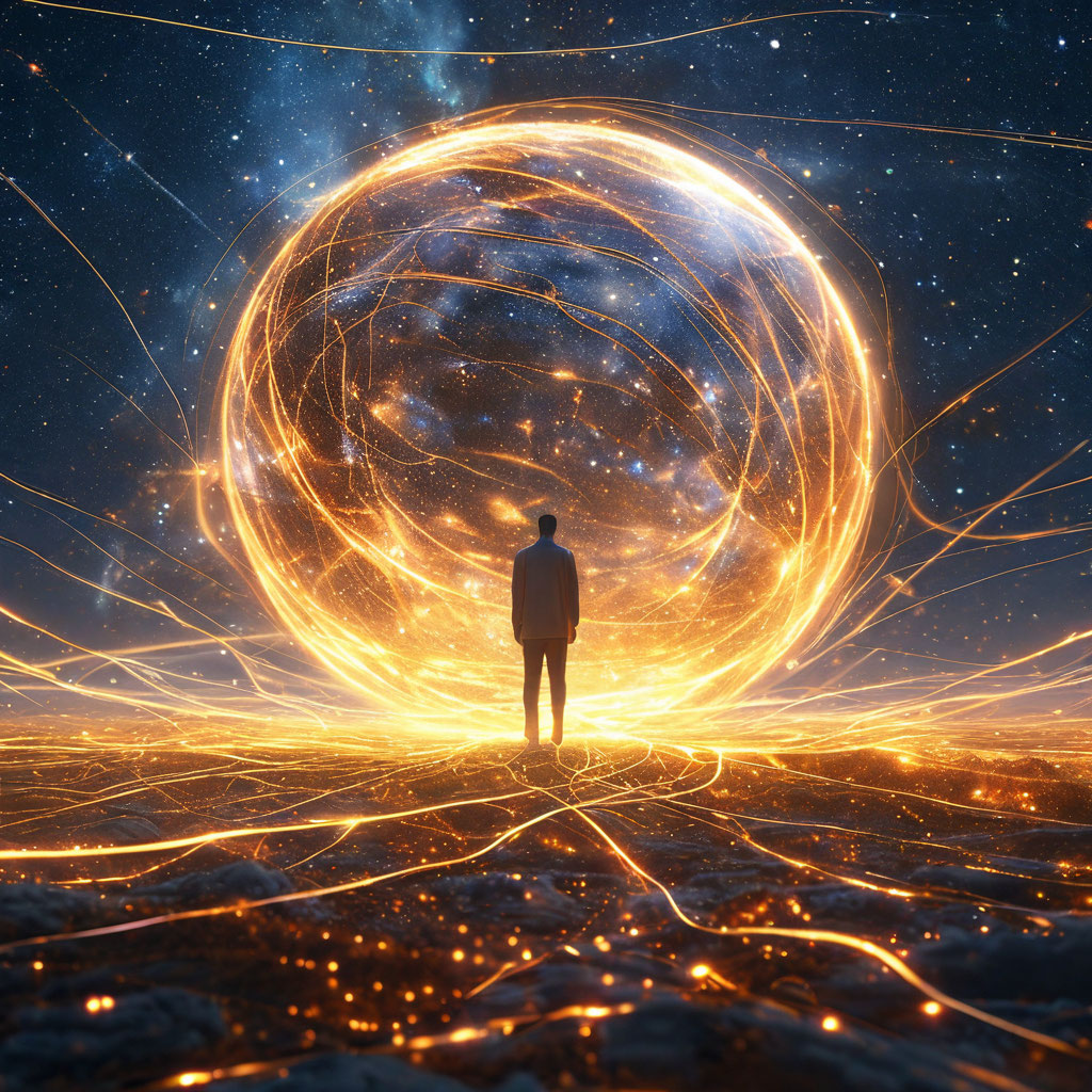 Представление яркого света или золотой энергии, соединяющей с полем Вселенной.