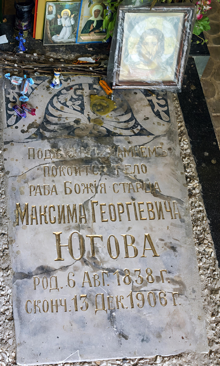 Максима Егоровича Югова похоронили недалеко от храма на восточном склоне, там, где он любил отдыхать и общаться с народом.