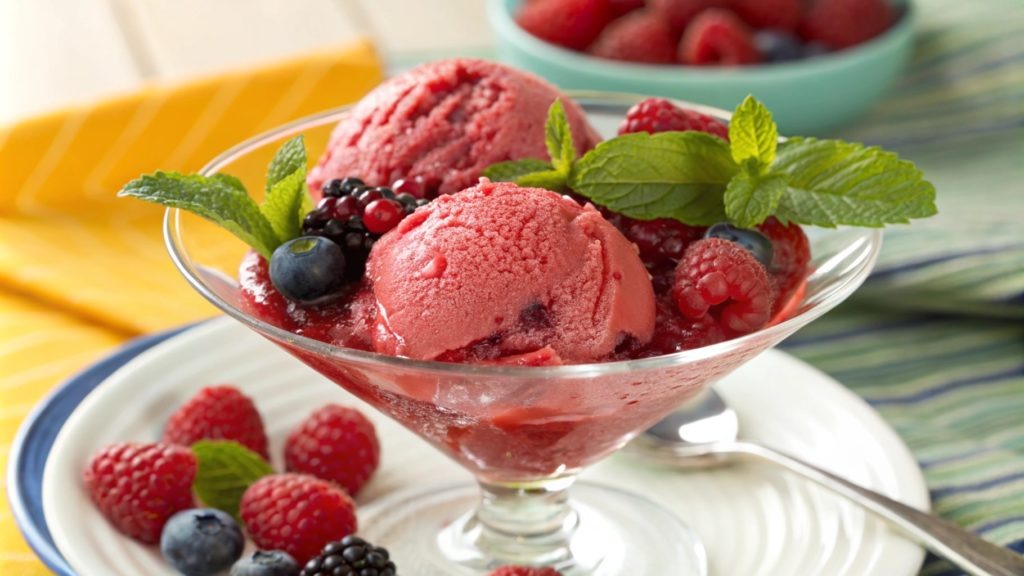 Сорбет из малинового пюре — это освежающий десерт, который подходит как для летних дней, так и для праздничных мероприятий. Его яркий цвет и насыщенный вкус делают его не только лакомством, но и прекрасным украшением любой трапезы. Легкость в приготовлении и отсутствие молочных продуктов позволят удовлетворить потребности даже тех, кто придерживается веганского питания. Для более сладкого сорбета можете увеличить количество сахара или использовать натуральные подсластители.Сорбет можно украсить свежими ягодами или мятой при подаче.Можно заменить малину на другие ягоды, такие как клубника или черника, для разнообразия вкуса. Общее время приготовления составляет около 6-8 часов, включая время на заморозку. Сорбет из малинового пюре можно подавать на 4-6 порций. На 100 г сорбета: