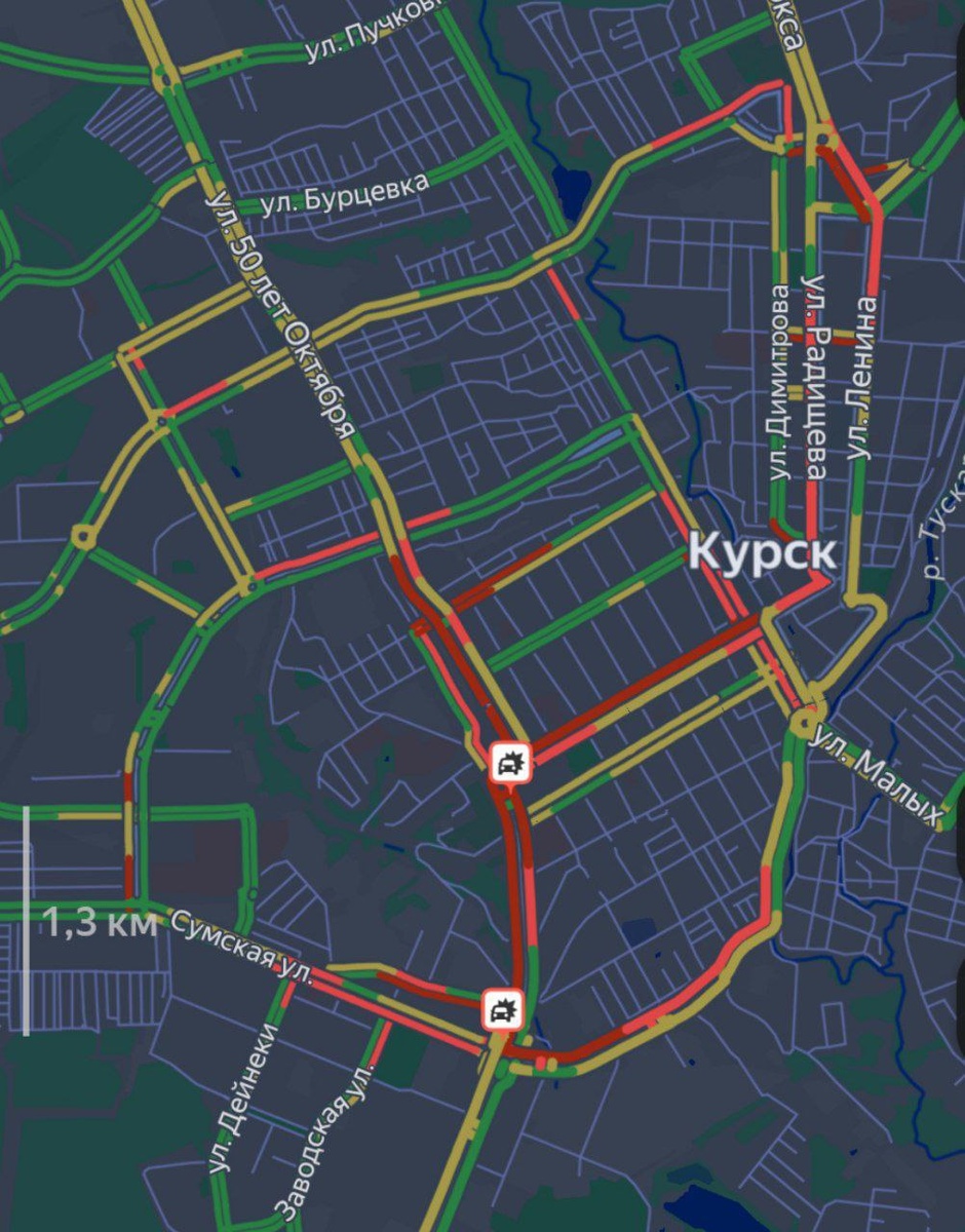 Для курских автомобилистов и пассажиров выдалась настоящая пятница 13-го. Снегопад привёл к серии автомобильных аварий и серьёзным затруднениям в движении транспорта. В сообществе «Автокадр_46» в течение дня очевидцы сообщали о дорожно-транспортных происшествиях на улицах Садовая, Дзержинского (одно из них с участием автобуса «Волгабас»), Радищева, перекрёстке Мыльникова и Майского бульвара, на Энгельса и т. д. Судя по снимком, обошлось без серьёзных последствий, но город застыл в пробках. По информации сообщества «Курский транспорт», значительно затруднено движение в центре города, а также по улицам Бойцов 9-й Дивизии, 50 лет Октября, Энгельса и Красный Октябрь. А вот под Сумским мостом в направлении проспекта Кулакова проезд оказался полностью блокирован.