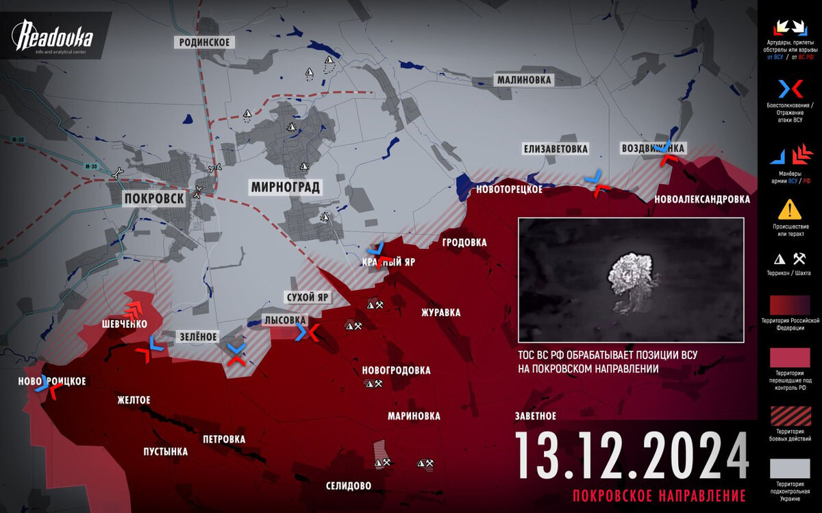 ВС РФ вплотную подошли к Покровску – итоговая сводка Readovka за 13 декабря