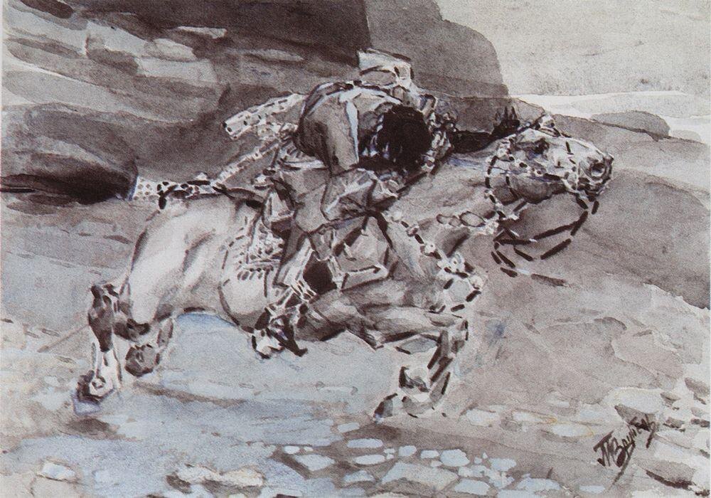И когда потом увидел труп своего лихого коня... вздохнул и отвернулся. Как накануне невольно закрыл глаза, увидев между расселинами скал окровавленный труп Грушницкого.