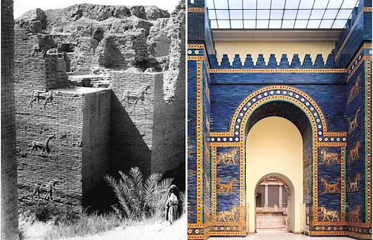 Врата богини Иштар - главный вход в Вавилон. В лучах весеннего солнца Врата прекрасной богини представляли собой в высшей степени захватывающее зрелище: золото, кирпичи, покрытые слоем ляпис-лазури и шествующие среди цветов священные животные богини... Считается, что Вавилон, как государство, возник во время правления царя Хаммурапи (1792–1750 гг. до н.э.), что именно тогда Вавилон стал одним из самых величественных городов древнего мира. Врата богини Иштар были воссозданы при Навуходоносоре II (605–562 гг. до н. э.) в знак искреннего почитания им великой богини. Крыша и двери Врат были из кедра, а кирпич был облицован пластинами из ляпис-лазури, тёмно-синего полудрагоценного камня. Высота Врат - около 12 метров. Ежегодно статую богини Иштар проносили через Врата по Дороге Процессий во время празднования Нового года. Само празднество называлось ФЕСТИВАЛЬ АКИТУ. О Фестивале Акиту сообщается в м