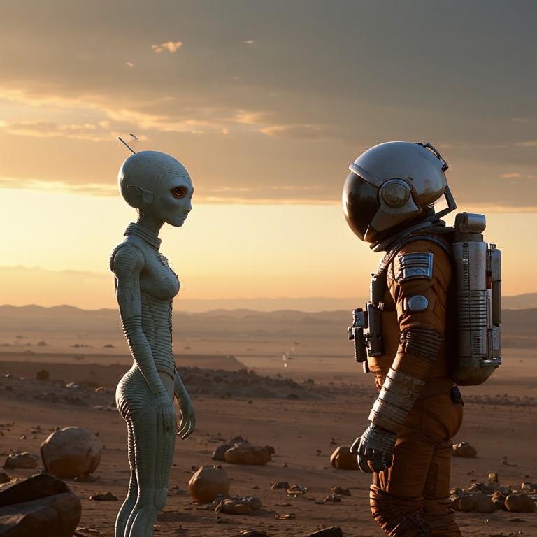 Третья глава: Контакт София стояла перед выбором. С одной стороны, у неё был долг перед командой и миссией, с другой — любопытство и надежда на мирное общение с внеземной цивилизацией. Она посмотрела на Алексея, который ждал её решения с трепетом. — Мы должны дать им шанс, — тихо сказал он. — Может быть, они действительно хотят мира. София кивнула, понимая, что риск велик, но возможности, которые открываются перед ними, ещё больше. — Хорошо, — сказала она. — Ньютон, отправь ответное сообщение. Скажи, что мы готовы к переговорам. Искусственный интеллект выполнил приказ, и вскоре маленький корабль, который передал первое сообщение, приблизился к «Звезде». На экранах появилась фигура, напоминающая гуманоида, но с некоторыми отличиями. Его кожа была переливающейся, а глаза светились мягким голубым светом. — Приветствуем вас, — произнес гуманоид на универсальном языке, который использовали для межзвездных коммуникаций. — Мы рады, что вы решили дать нам шанс. София сделала глубокий в
