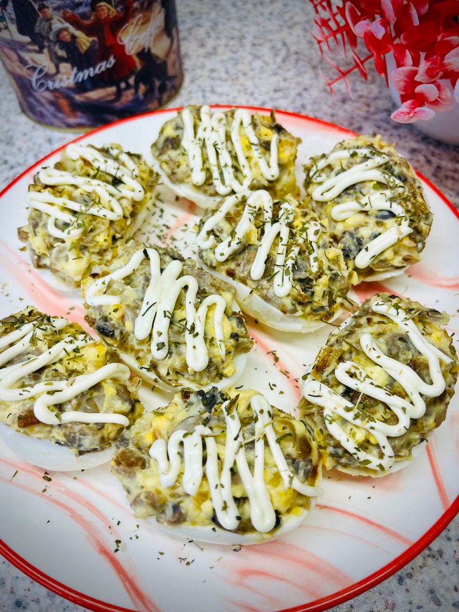 Фаршированные яйца - это классическая закуска, которая занимает почетное место на любом праздничном столе. Они просты в приготовлении, но при этом обладают изысканным вкусом и выглядят очень аппетитно. Одним из самых интересных вариантов являются фаршированные яйца с шампиньонами. Это сочетание придаёт блюду оригинальность и насыщенный вкус, который приятно удивит ваших гостей. Ингредиенты: Для приготовления фаршированных яиц с шампиньонами вам понадобятся следующие ингредиенты: Приготовление: 6.Их можно подавать как холодную закуску. Прекрасно сочетаются с разными салатами и закусками. Хранить такую закуску лучше в холодильнике, и она станет ещё вкуснее через несколько часов после приготовления, когда все ароматы окончательно соединятся. Фаршированные яйца с шампиньонами - это не только вкусная, но и очень красивая закуска. Они отлично подойдут для любого стола, будь то праздник или обычный семейный ужин. Не бойтесь экспериментировать с ингредиентами и добавлять в начинку сво