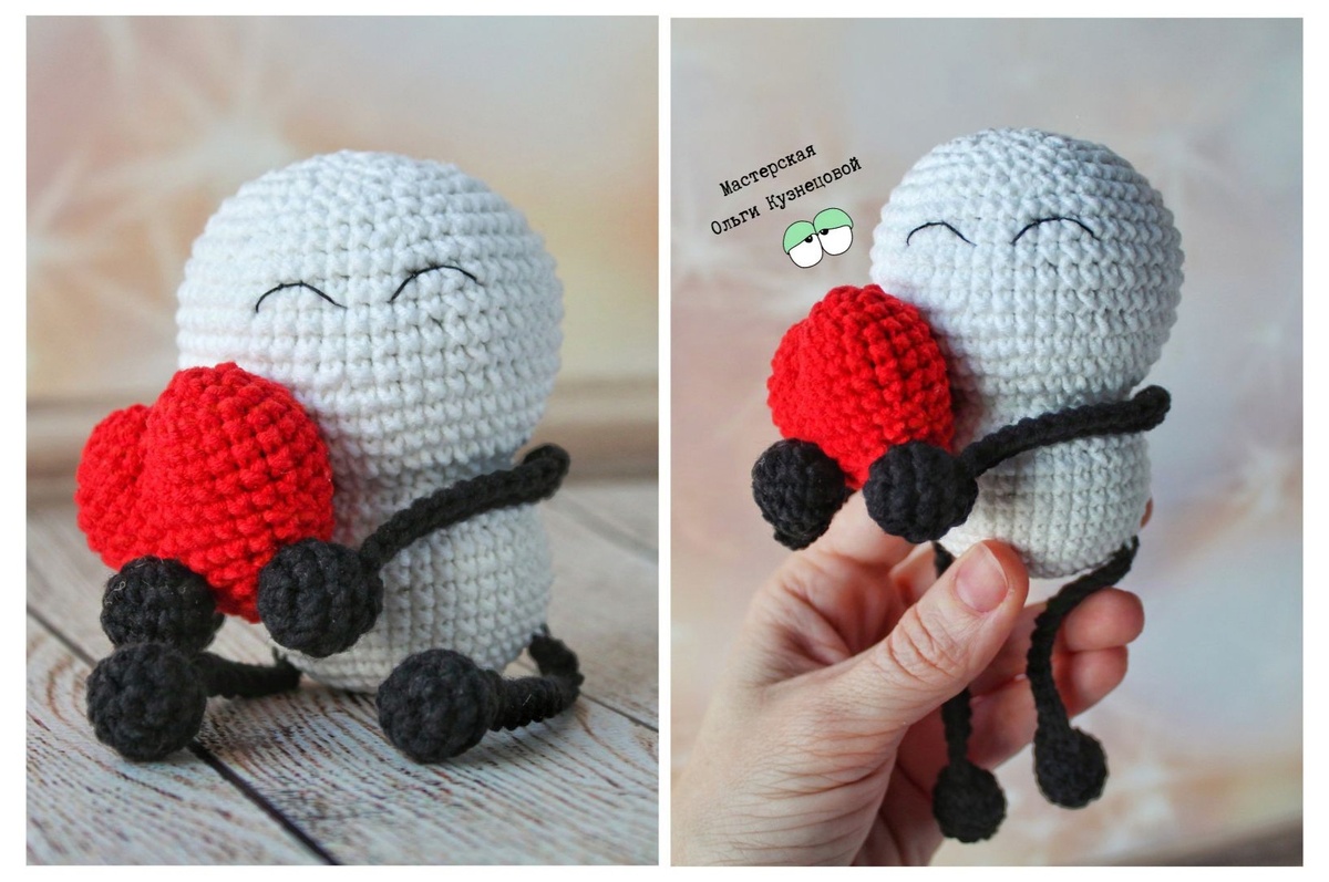 Инструменты и материалы: 1. Для работы подойдет любая пряжа, в данном МК используется YarnArt Jeans 2. Крючок под выбранную пряжу, я использую №1,5 3. Наполнитель для игрушек 4. Глазки на безопасном креплении (для jeans 4-6 мм) 5. Игла для пришивания 6. Ножницы Ноги и руки 1. 6 сбн в КА 2. Приб*6 (12) 3 – 4 (2 ряда). 12 сбн 5. уб*6 (6) Набиваем, отверстие стягиваем, кончик прячем внутрь. Набираем 16 вп, со второй петли от крючка провязываем 15 сбн. Нить закрепляем, отрезаем. Оставляем кончик для пришивания. Пришиваем полоски к шарикам. Тело 1. 8 сбн в КА 2. Приб*8 3. (приб, 1 сбн)*8 (16) 4. (приб, 2 сбн)*8 (24) 5. (приб, 3 сбн)*8 (32) 6. 2 сбн, (приб, 4 сбн)*7, приб, 2 сбн (40) 7. 9 сбн, 2 сбн (захватывая петли ноги и тела одновременно), 18 сбн, 2 сбн (захватывая петли ноги и тела одновременно), 9 сбн (40) 8 - 12 (5 рядов). 40 сбн 13. 9 сбн, уб, 18 сбн, уб, 9 сбн (38) 14. (17 сбн, уб)*2 (36) 15. 8 сбн, 2 сбн (захватывая петли руки и тела одновременно), 16 сбн, 2 сбн (захватывая петли