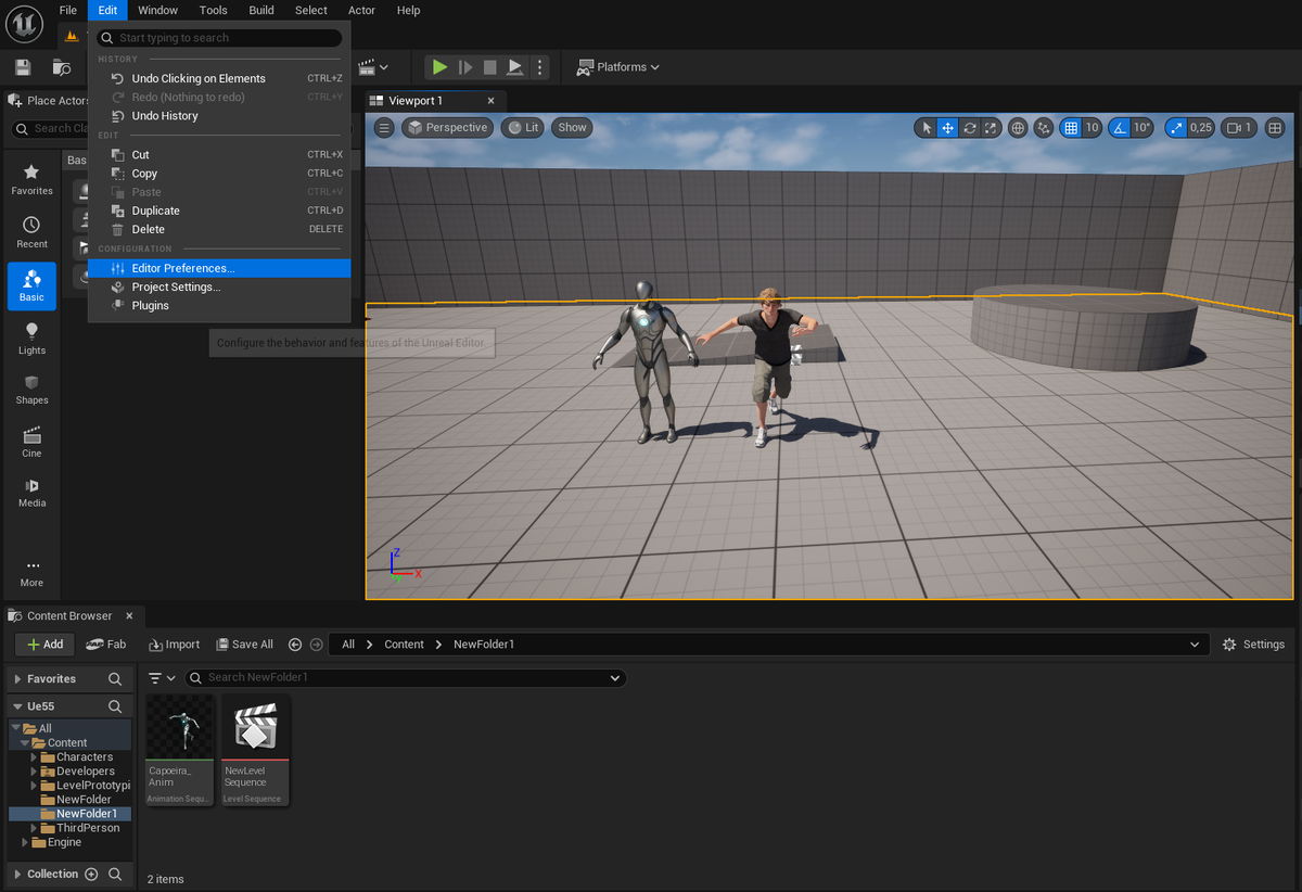 Сначала нам в верхнем меню надо нажать на Edit->Editor Preferences.