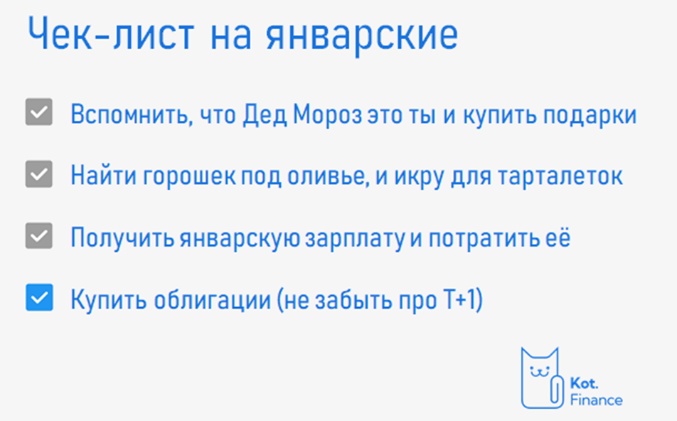 Шуточный чек лист. Конечно же закупить облигациями😉 🤝Присоединяйся к сообществу Кот.Финанс: мы делаем обзоры компаний, рынков, недвижимости