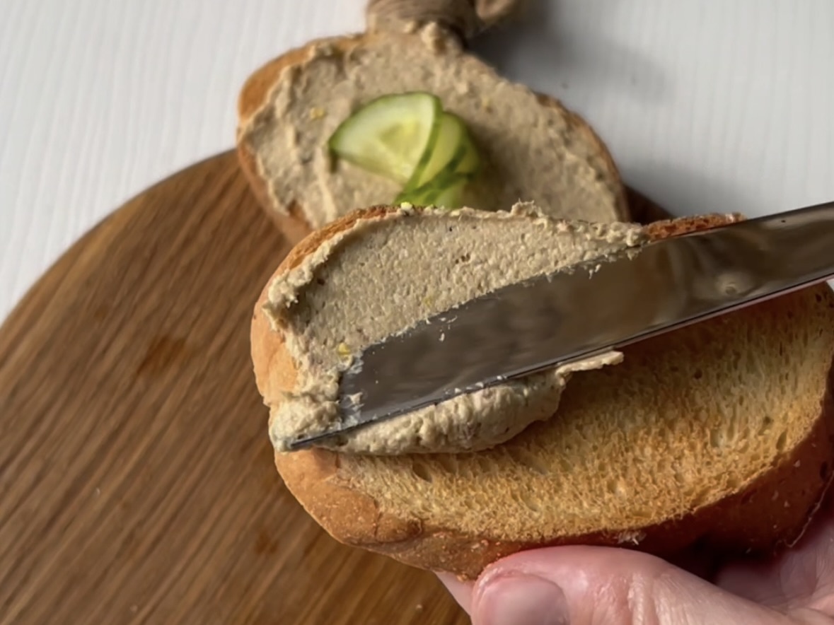 Останется запустить блендер и добиться однородной нежной консистенции. Батон подсушить на сковороде.