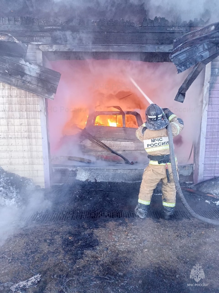 Возгорание могло произойти из-за оставленного без присмотра тэна. Пожар в гараже произошел 27 декабря в селе Подоловка Завитинского округа. Сообщение о возгорании на улице Чкалова поступило в службу спасения Завитинска. На момент прибытия боевых расчетов из гаража шел дым и вырывалось пламя. В тушении были задействованы 11 сотрудников и 4 единицы техники Завитинского пожарно-спасательного гарнизона. "В результате пожара гараж поврежден по всей площади. Сгорели автомобиль и снегоход. Повреждены огнем еще одна машина и два квадроцикла", - рассказали в МЧС России. Проводится доследственная проверка, причина пожара устанавливается. Предположительно, возгорание произошло в результате нарушения установки электронагревательного прибора (оставлен без присмотра тэн). Фото ГУ МЧС России по Амурской области Читать на сайте ТЕЛЕПОРТ.РФ Еще больше новостей в нашем телеграм-канале https://t.me/amurobl