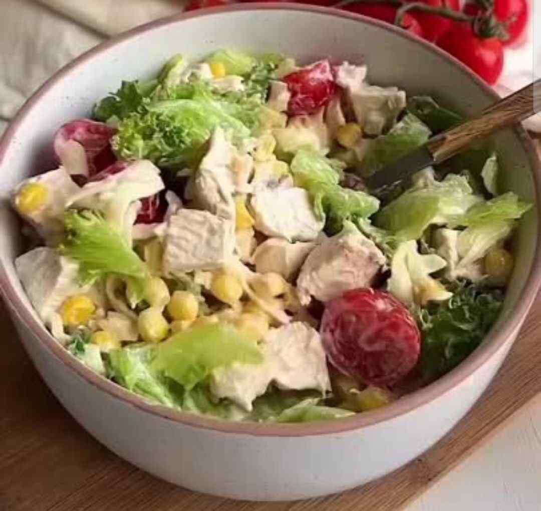 Ингредиенты: ✅ Куриное филе - 300 гр. ✅ Помидоры (черри) - 150 гр. ✅ Сыр - 100 гр. ✅ Кукуруза (консервированная) - 1 банка. ✅ Сметана - 60 гр. ✅ Горчица - 1 ч.л. ✅ Соль - по вкусу. ✅ Листья салата - 1 пучок. Варим куриное филе в кипящей подсоленной воде, примерно 20-30 минут. Сыр натираем на крупной тёрке. Помидоры режем пополам. Нарезаем куриное филе на кубики. Курицу, помидоры, сыр, кукурузу, горчицу, соль перемешиваем со сметаной. Если будете делать для праздника, то листья салата лучше положить перед подачей, так они будут хрустящими. Подпишись на РЕЦЕПТЫ 🥗 Приятного аппетита 😋 #салаты #лёгкийсалат #вкусныйсалат #рецептсалата #салатскурецей #рецепты #праздники #пп