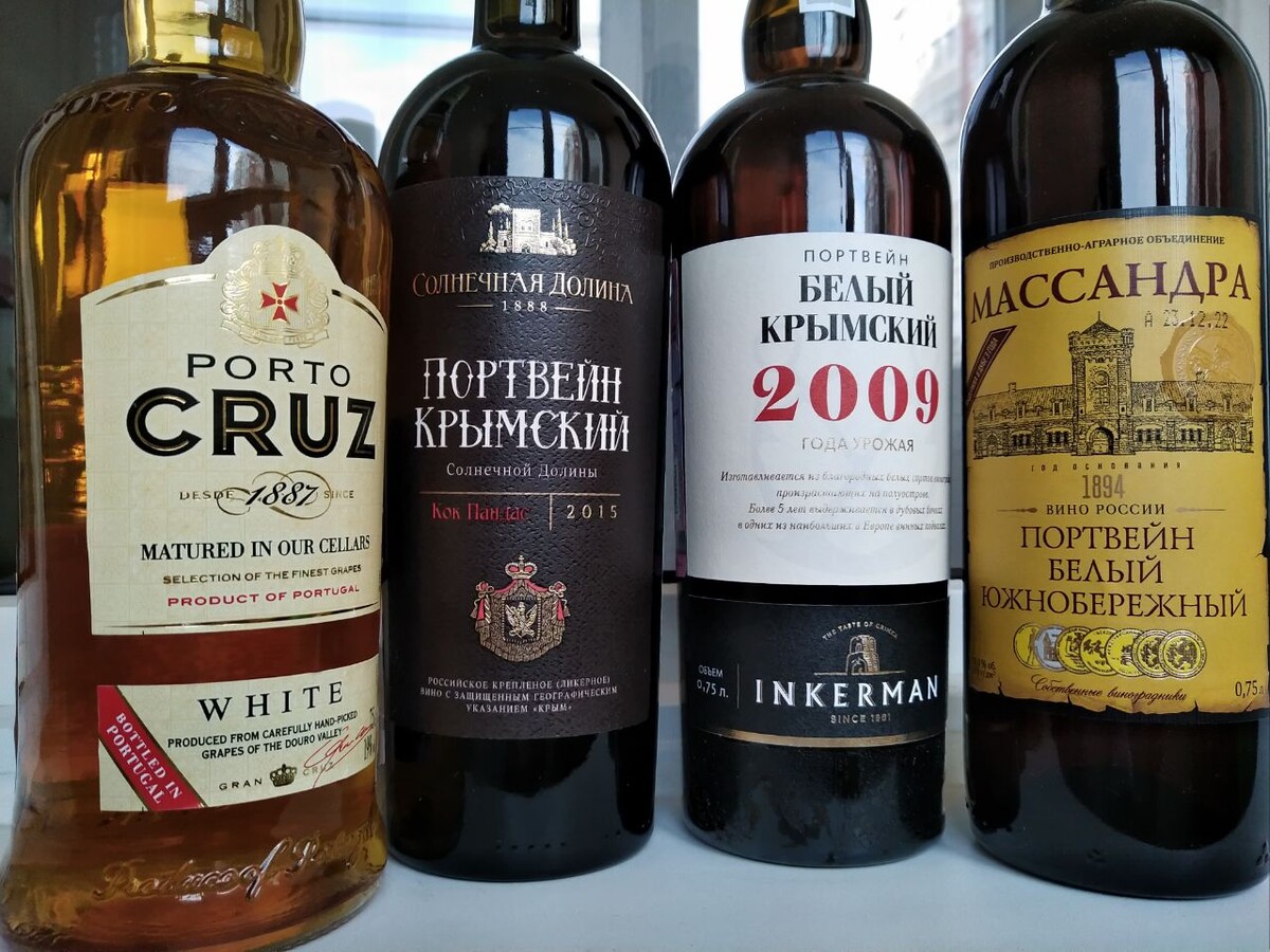 Белые портвейны: "Инкерман Белый Крымский", "Портвейн Крымский Солнечной Долины", "Портвейн Белый Южнобережный" "Массандры" и Cruz Porto White, - это одно сравнение.