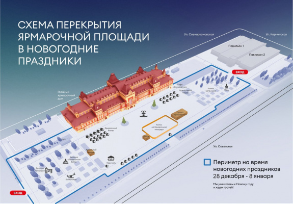С 28 декабря и до 8 января попасть на территорию ярмарки в Нижнем Новгороде можно будет только со стороны выставочных павильонов около остановки «Стрелка» и с площади Ленина.