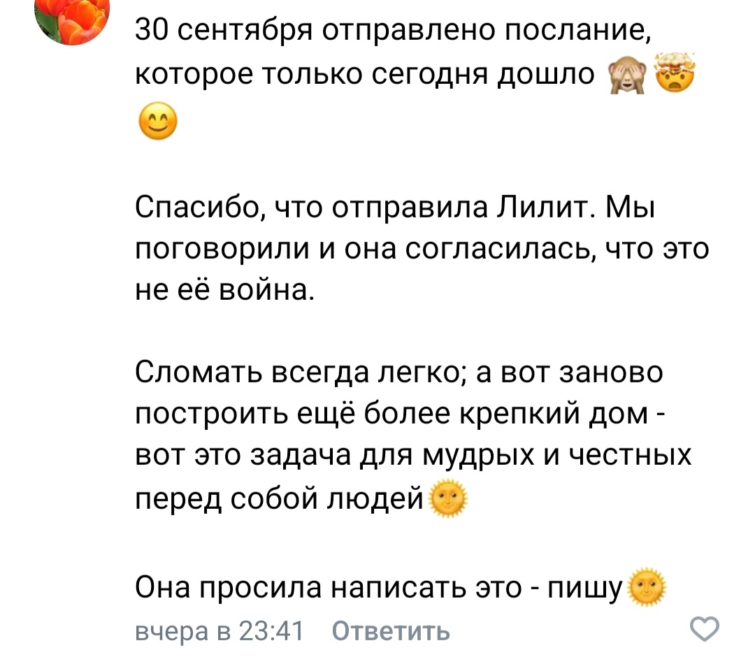 Хотела я этот нарцисий поток сознания слить его дамам. Дескать: "плохо за мальчиком смотрите, раз он мне пишет. И не наливайте больше, чтоб ему суккубы не мерещились". Начало тут: Думала-думала вчера и не стала сливать... Вдруг у них настолько все скучно и поговорить не о чем? А тут я. Все новогодние каникулы в один миг пролетят за разговорами, скандалами и обсуждением нового поворота нашей истории. Захотят потом отомстить и назло заделают еще 100500 детей. (знаете ж весь прикол моей драмы? Нарцисс ребенка на стороне завел, чтобы меня позлить🤣🤣🤣) Ну уж нет! Не предоставлю им такое удовольствие! Есть такие мертвые союзы, которым для развития нужна энергия другого из вне. Вот и ищут третьего, чтобы на его спине в рай въехать. Это как раз для любовниц, которые все никак не поймут ПОЧЕМУ ОН НЕ РАЗВОДИТСЯ, ведь у нас любовь! А они с женой как два удава. Друг от друга тошнит уже, а кушать хочется. Не собираюсь я больше быть донором для данного персонажа. Пусть сами друг друга грызут ка
