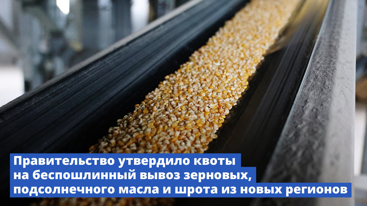 Квота на экспорт зерновых культур (пшеница и меслин, ячмень, кукуруза) из этих регионов составит почти 2 млн т.