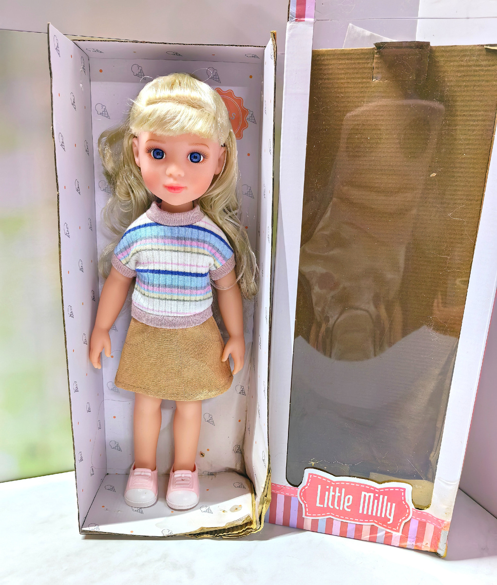 Не удержалась и цапнула)))) Давно смотрела на эту куколку, но ценник всю дорогу был не гуманный. Вот эту блондиночку уже заказывала по цене 886р. Тогда мне казалось это очень бюджетно. Прочие были дороже 1000р. Всё мне в ней понравилось, кроме прошивки под прическу. Вернула ее. А потом гляжу она же по цене 593р. Тут я не удержалась и схватила)))) Девчонка уж больно хороша. Личико скопировано с куклы Готц. Помню я очень хотела оригинал, но у нее уж больно крупный, по моим меркам, размер. А тут такая крошечная копия, что невозможно удержаться. Хочу еще такую, но с каким-нибудь другим цветом волос) Мне пришла кукла в мокрой насквозь коробке. Но это ерунда, я не коробку покупала, мне нужна была кукла. Личико ангельское! Печать, как обычно, прекрасна, глазки прямо живые. В этот раз фирма именуется Little Milly. Хотя печать на лице точно такая же, как у кукол Max & Jessi. Видимо, делают на одной и той же фабрике. Ладненькая девчонка! Вот такая вот прошивочка. На часть головы сделан хвостик,