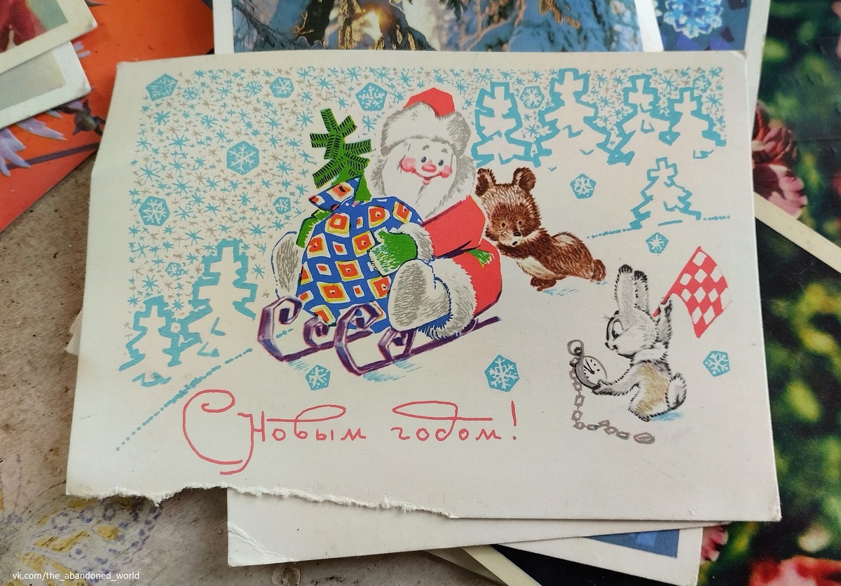 За много лет моих поездках по заброшенным деревням различных регионов России удалось найти десятки старых новогодних поздравительных открыток.