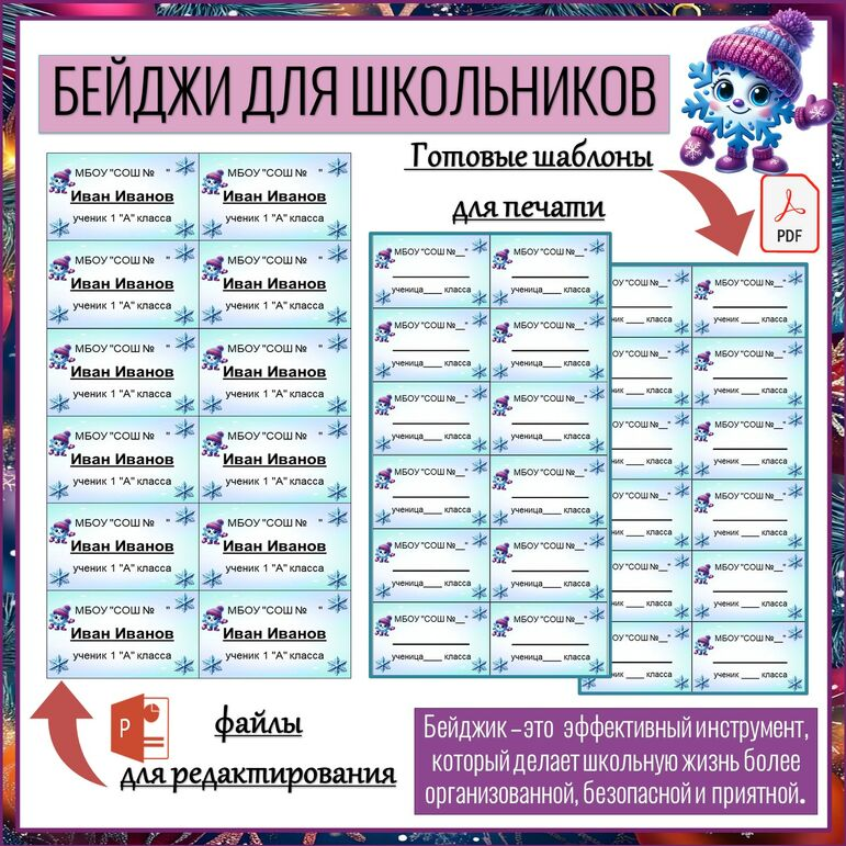 Для новых учеников или в больших классах бейджик помогает быстрее влиться в коллектив, облегчая процесс знакомства и общения.
