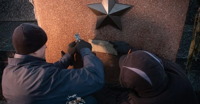 В Киеве по инициативе Национального музея истории Украины во Второй мировой войне были демонтированы названия городов Москва и Минск, а также изображения медалей «Золотая Звезда» Героя Советского Союза на Аллее городов-героев. Пресс-служба музея пояснила, что демонтаж связан с проведением реставрационных работ, рекомендованных специалистами Национального реставрационного центра. О дальнейшей судьбе демонтированных элементов, включая возможность их возвращения на прежние места, информации пока нет. Аллея городов-героев включает упоминания 12 городов, а также Брестской крепости, отмеченных званиями за выдающиеся заслуги в героической обороне во время Великой Отечественной войны. Все они находятся на территории бывшего Советского Союза и традиционно ассоциируются с памятниками советской истории и подвига. Ранее Национальный банк Украины предложил изменить название разменных монет с «копейки» на «шаг». Всë также в целях «декоммунизации» и «деколонизации».