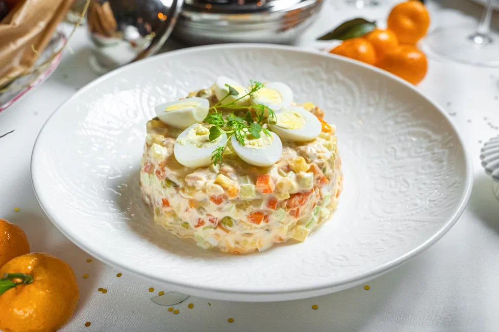 Осталось всего несколько дней до заветного боя курантов, и мы, попрощавшись с високосным годом, вступим в год Новый. За праздничным столом мы загадаем самые заветные желания. И непременно нужно, чтобы стол был по-настоящему новогодним! Самые яркие герои новогоднего стола – это, конечно же, шампанское и мандарины. У многих в новогоднюю ночь на столах появляются красная икра, семга и прочие деликатесы. А еще вкуснейшие салаты: оливье, мимоза, сельдь под шубой. Их мы не готовим каждый день, но Новый год хотя бы один из них украшает праздничный стол в каждой семье. Можно настругать новогодние салаты самим. А можно устроить настоящий праздник и заказать эти салаты в ресторане, например, в Capo. При этом ресторанная интерпретация привычного салата преобразит его и сделает вкус феноменальным! Обычный ингредиент для оливье – докторская колбаса. Не будем лукавить, именно ее стругают в большинстве домов. Реже используют язык или отварное мясо. И то, с такой достойной заменой оливье подают чаще