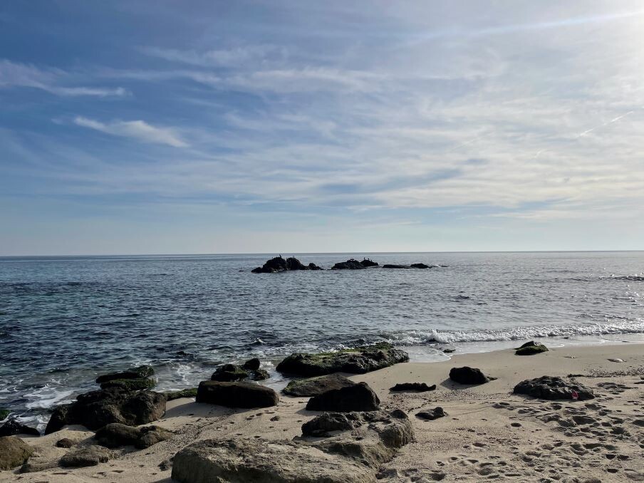 От этого места до песчаного пляжа можно дойти всего за 100 метров. Доступ к нему обеспечивают лестница и асфальтированная тропинка.