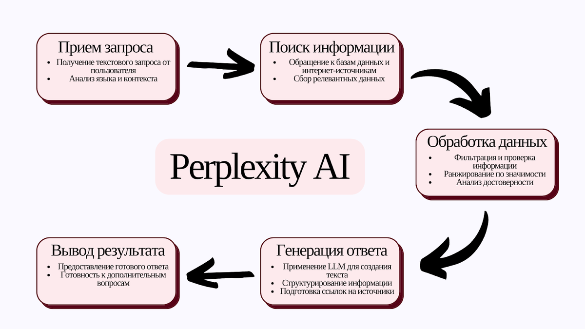 Perplexity — это умный поисковый инструмент, который использует алгоритмы искусственного интеллекта, чтобы быстро и точно находить нужную информацию. Вот несколько ключевых моментов, которые выделяют Perplexity на фоне других решений:
