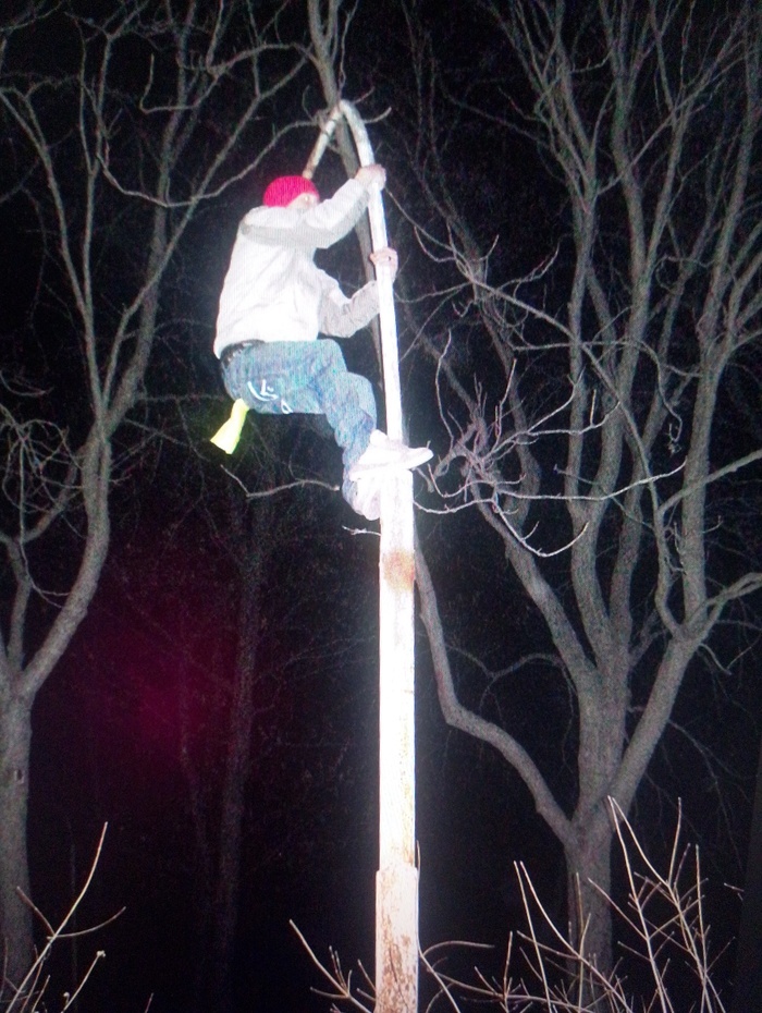 Начало двухтысячных, провожаем друга в армию, около 50 человек, отмечаем с размахом, до утра, утром посадили в автобус, уехал. Поспали, вечером собрались в местном кафе опохмелиться, через час заходит. Все в шоке, как так. Сделали флюорографию, затемнение в лёгком, отправили на дообследование. Обследовался, всё хорошо. Через пол года опять проводы. Той же большой компанией, отмечаем всю ночь, фотографируемся, под утро в парке возле кафе он лезет на старый ржавый фонарный столб ради прикольной фотографии, столб складывается пополам, вызываем скорую, операция, два перелома, один очень сложный. После травмы поставили категорию непригоден. Больше проводов не было. Фото с места события😂